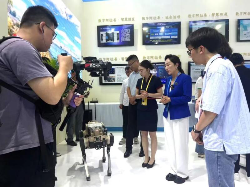 在“數(shù)智政務”體驗區(qū),參展嘉賓深入了解阿拉善盟依托一體化政務服務平臺實現(xiàn)政務事項“一網(wǎng)通辦”“掌上辦”的生動案例。實物陳列區(qū),全球首例駱駝瘤胃膠囊、“時光”雕刻機、“電子狗”“電子狼”等阿拉善盟應用于各領(lǐng)域的諸多高科技產(chǎn)品一一亮相。在互動體驗區(qū),阿拉善禮物深受歡迎,“數(shù)字身份證”為阿拉善禮物追根溯源。同時,“阿拉善特色產(chǎn)業(yè)”平臺、“一億棵梭梭”互動系統(tǒng)、VR數(shù)游阿拉善等,充分體現(xiàn)了數(shù)字技術(shù)在特色產(chǎn)業(yè)、生態(tài)、文旅、政務領(lǐng)域的落地成效。