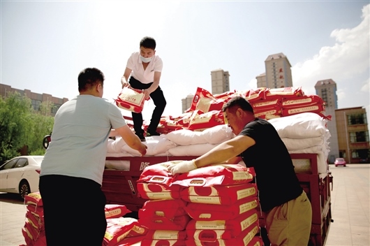 聽說這批物資是捐贈給學(xué)校的,拉載物資的工人以及尚宇的朋友、家人紛紛前來幫助搬運(yùn),“我們帶著120袋優(yōu)質(zhì)大米、200袋面、100箱有機(jī)蔬菜,慰問高新一中辛勤的老師,這是尚宇以個(gè)人的名義捐贈的。老師們無微不至地為學(xué)生付出,在這個(gè)特殊時(shí)期,希望通過慰問來表達(dá)對老師們的敬意?!北簧杏畹男袨楦袆?,前來幫助搬運(yùn)物資的李聰亮介紹。