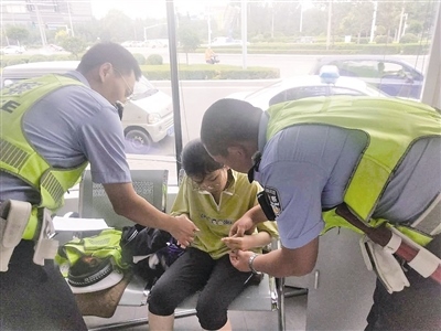 當(dāng)日,民警魏軍、張延旭、崔東迅在崗?fù)?nèi)執(zhí)勤,女孩兒進(jìn)入崗?fù)?,臉色蒼白滿頭是汗,沒說幾句話便暈倒并且伴有輕微抽搐癥狀,民警迅速將女孩兒扶到椅子上,初步判斷可能是中暑或者是低血糖引起,民警一邊呼叫救援一邊將高糖分飲料和冰糖喂到女孩口中,并用紙片不停地扇涼降溫,5分鐘后女孩兒逐漸緩過來,臉色也漸漸恢復(fù)血色。
