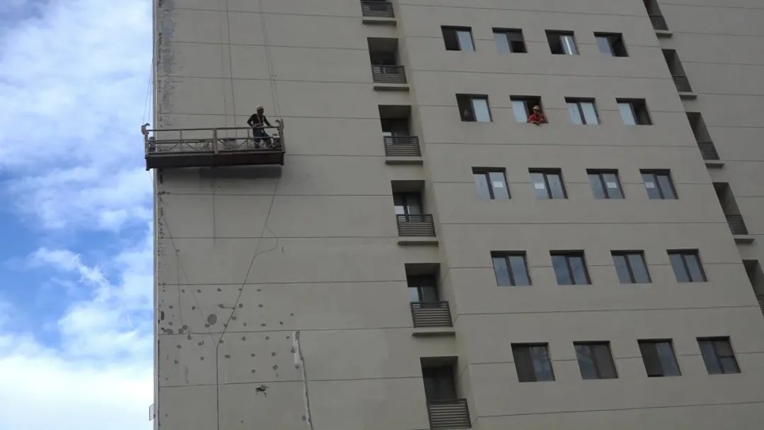 9月1日17時許,包頭市各地出現(xiàn)冰雹、雷雨大風(fēng)等強(qiáng)對流天氣,冰雹平均直徑5毫米,最大直徑10毫米。在這樣惡劣的天氣條件下,一名粉刷工人被困在包頭市富力城公寓8樓外的吊籃中,情況危急。