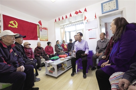 家庭黨校里,老黨員們正在學(xué)習(xí)。