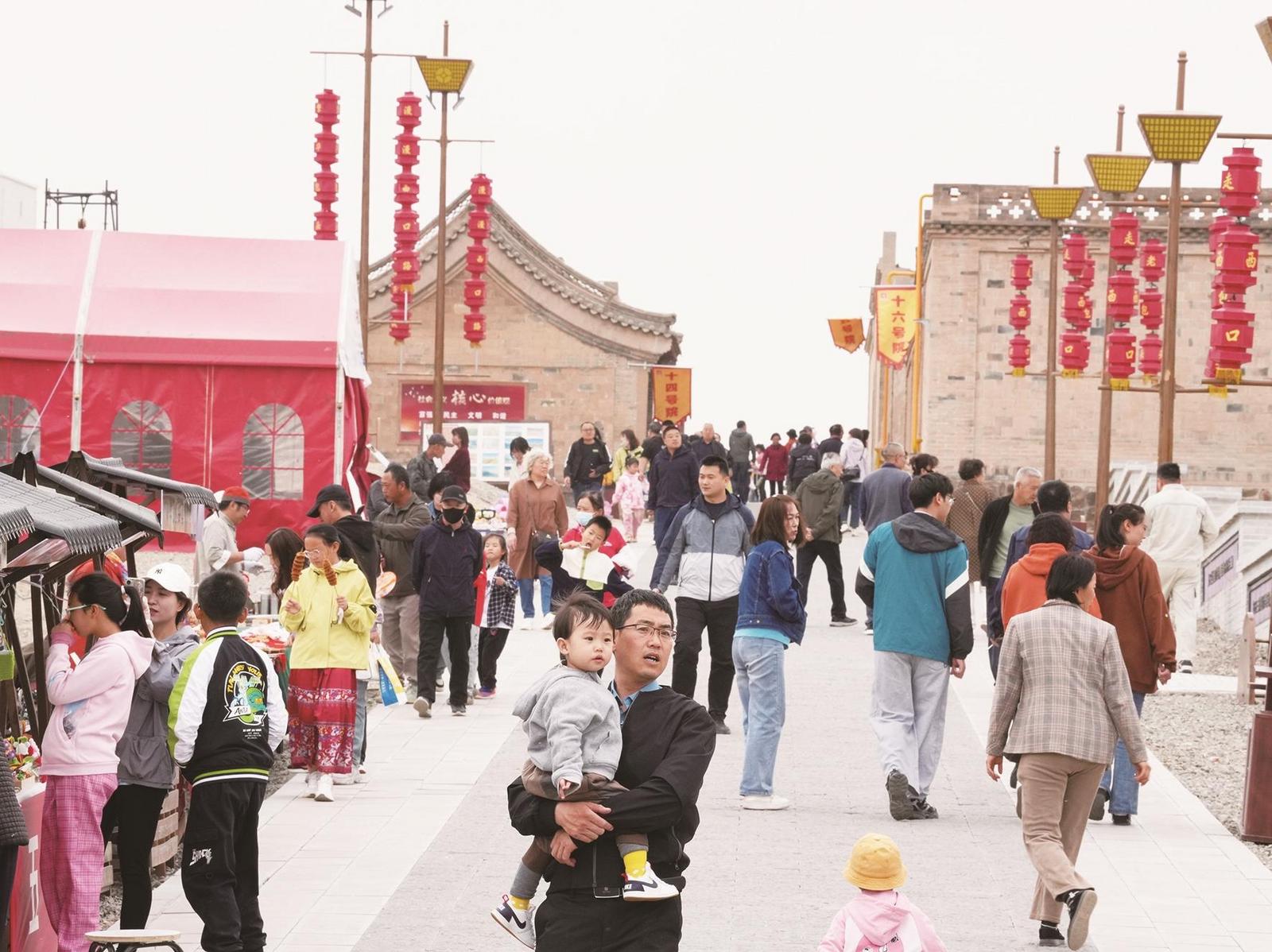 “五一”期間,老包頭走西口歷史文化街區(qū)人頭攢動(dòng)。