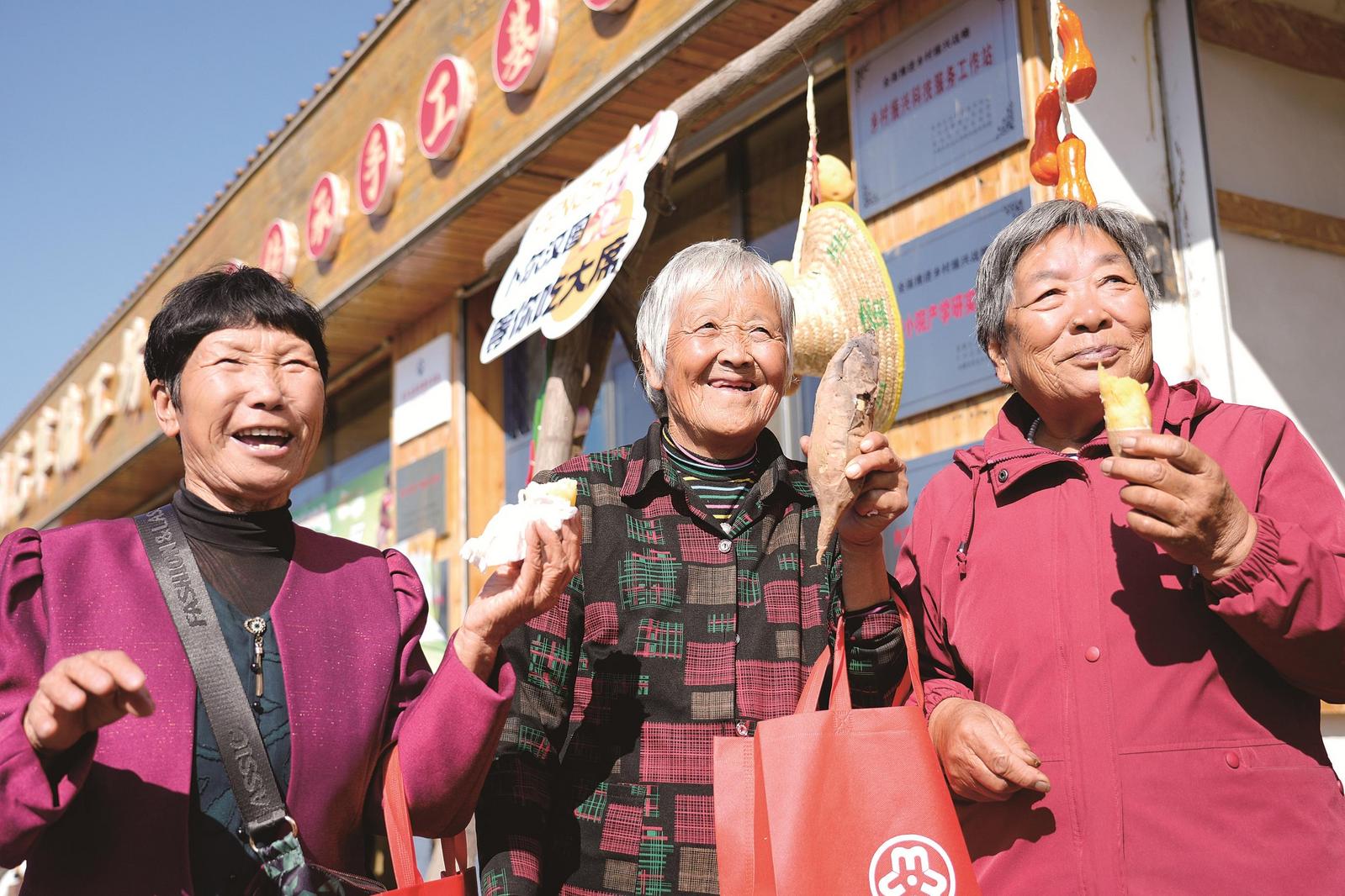 豐收節(jié)上,老人們笑容燦爛,捧著美食品嘗,用歡顏詮釋豐收的美好滋味。
