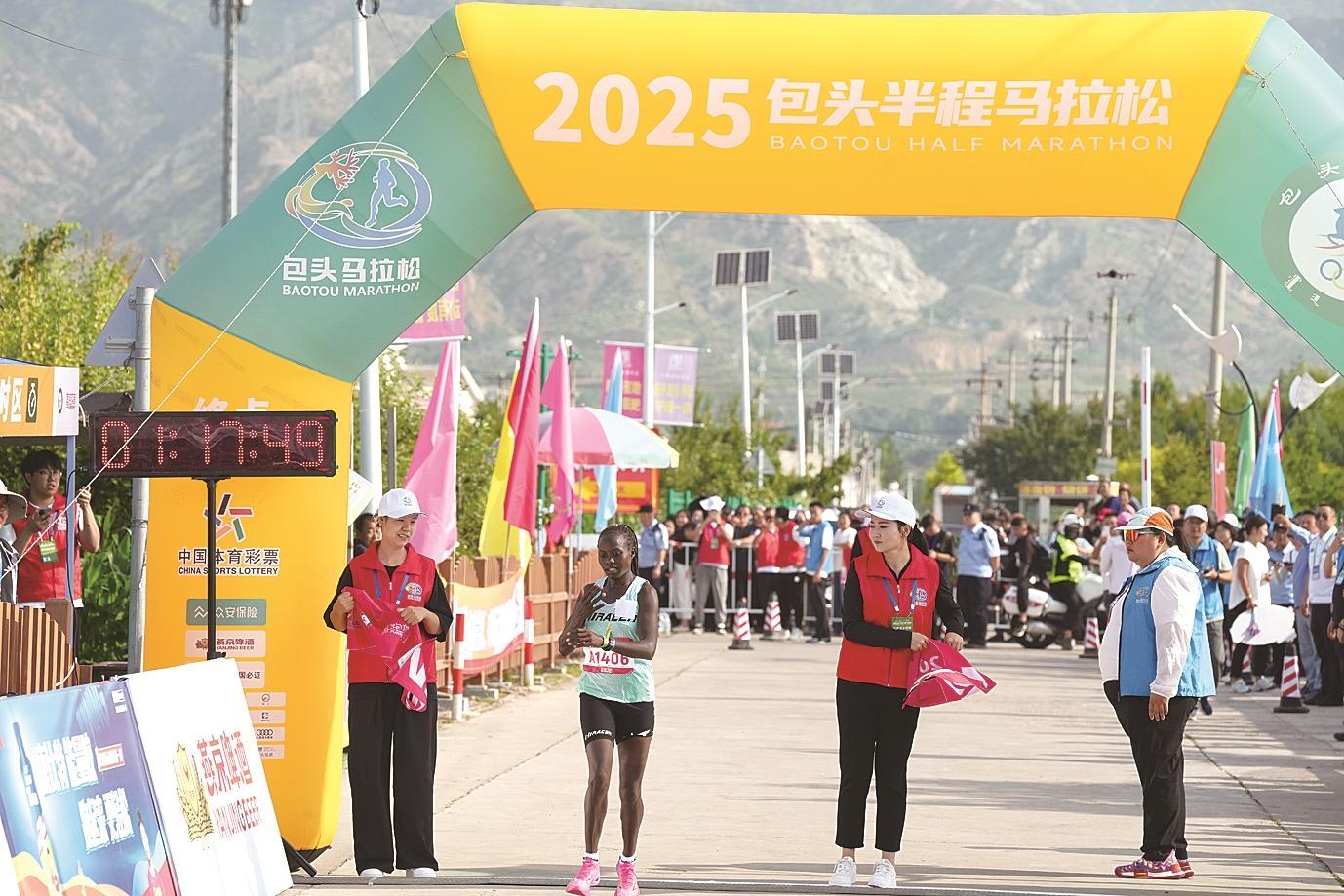 撞線后,男子組冠軍來自肯尼亞的選手Vincent kipchumba Toroitich表示:“這是我第一次來包頭,今天很開心能取得這個成績,感覺包頭非常好?!?/p>