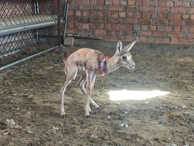 7月9日,甘其毛都邊境派出所民警與護(hù)邊員寶日夫在開展日常巡邊工作途中,發(fā)現(xiàn)一只受傷的黃羊幼崽伏在地上瑟瑟發(fā)抖。經(jīng)檢查,這只小黃羊年齡約為4個月,左后肢疑似扭傷,無法正常行走,身體也極為虛弱。民警立即將小黃羊帶到護(hù)邊員寶日夫家中包扎救治。寶日夫夫婦還為小黃羊做了一個項圈掛在脖子上,希望它盡快痊愈,茁壯成長。