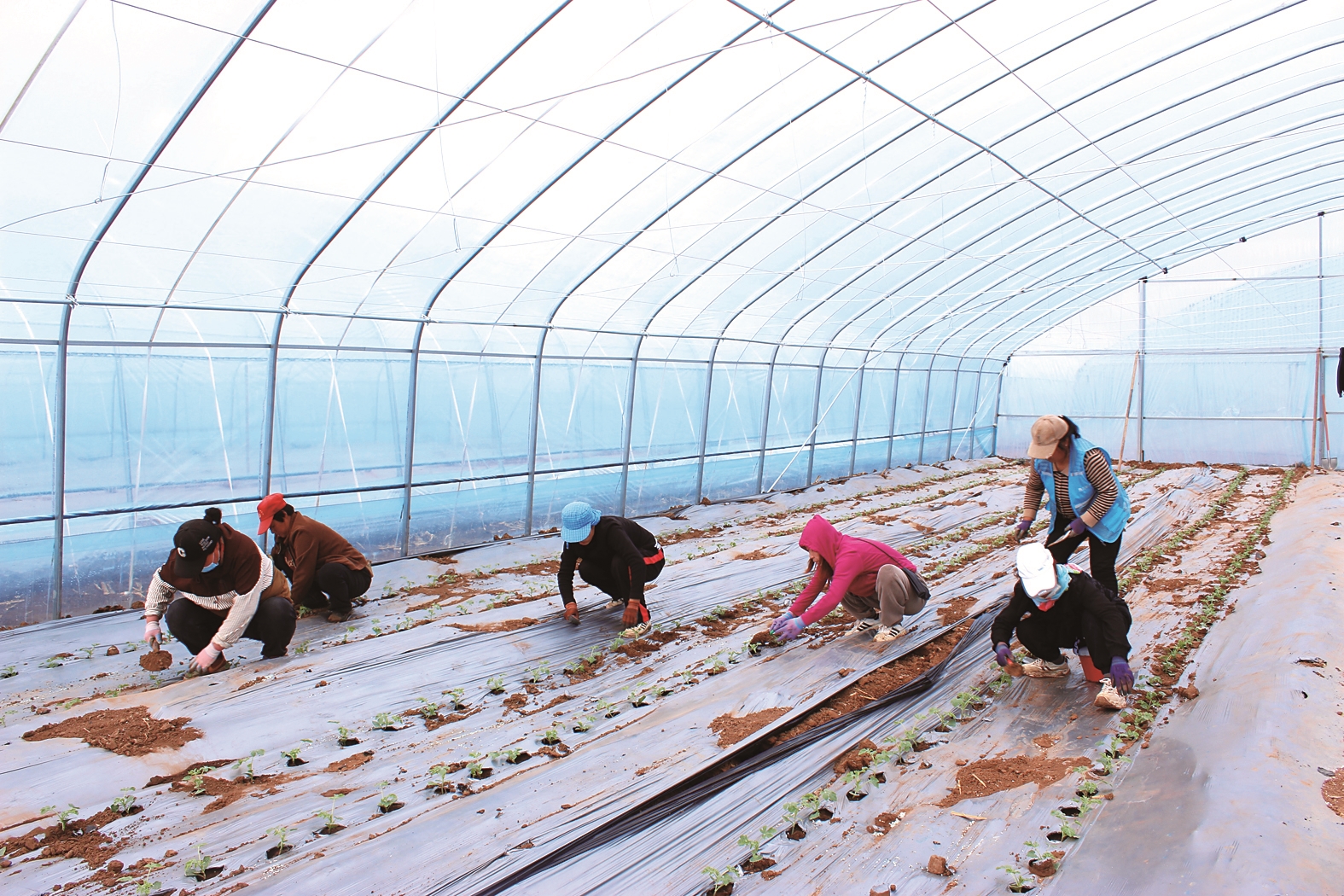 農戶栽植西瓜秧苗。