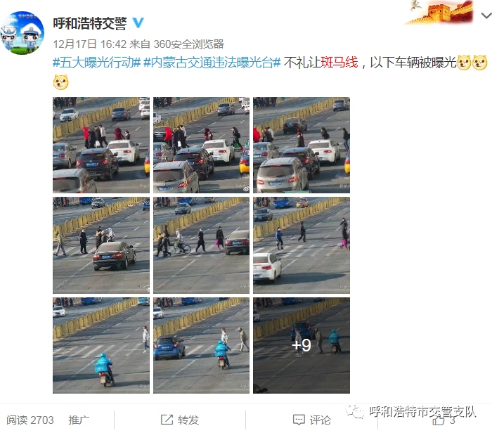 為實現(xiàn)斑馬線交通安全“三提升一下降”(機動車禮讓斑馬線和行人、非機動車守法意識明顯提升,輿論宣傳倡導(dǎo)“機動車禮讓斑馬線”的深度與廣度不斷提升,群眾對城市交通管理的滿意度顯著提升;因不禮讓斑馬線導(dǎo)致人員傷亡的交通事故發(fā)案率大幅下降)的目標,按照交管支隊關(guān)于開展集中整治機動車不禮讓斑馬線行動方案的統(tǒng)一部署,支隊指揮中心運用高科技手段,利用高清視頻探頭抓拍機動車不禮讓斑馬線等交通違法行為,并錄入道路交通管理綜合應(yīng)用平臺。自2020年12月12日至12月31日,利用大屏監(jiān)控設(shè)備抓拍260條,錄入系統(tǒng)并予以曝光。