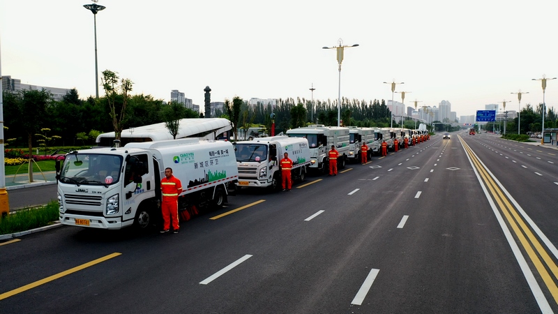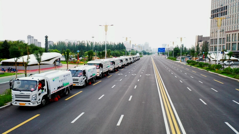 隨后,被譽(yù)為“大馬蜂”和“小蜜蜂”的18噸洗掃車(chē)和8噸洗掃車(chē)分工合作,將寬闊的成吉思汗大街機(jī)動(dòng)車(chē)道和非機(jī)動(dòng)車(chē)道清掃得干干凈凈。