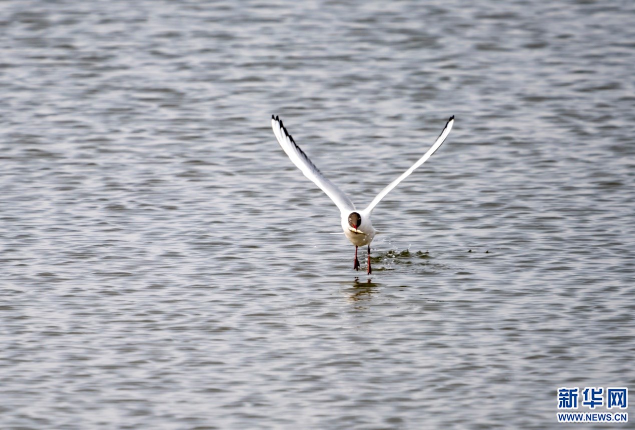 一只候鳥(niǎo)在土默特左旗海流水庫(kù)覓食休息。新華網(wǎng)發(fā)(陽(yáng)光 攝)