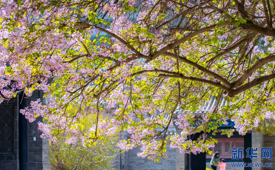 4月20日,市民在位于呼和浩特市的內(nèi)蒙古將軍衙署博物院觀賞盛開的丁香花。新華網(wǎng)發(fā)(丁根厚 攝)