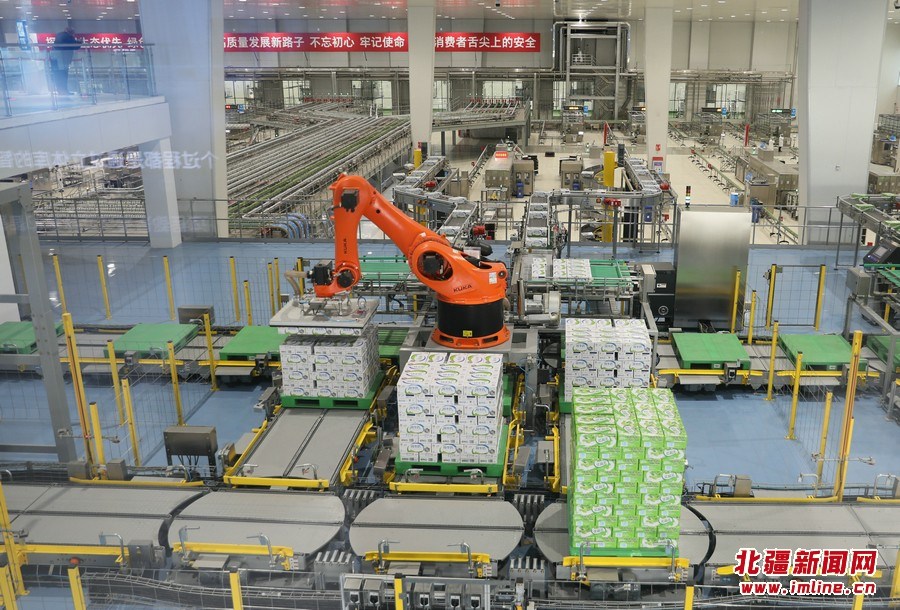 車(chē)間內(nèi)一派繁忙,液奶、奶粉生產(chǎn)線在高效運(yùn)轉(zhuǎn),貼管、分包、裝箱等工序一氣呵成,數(shù)字工廠、無(wú)菌車(chē)間、智能監(jiān)控等處處體現(xiàn)著現(xiàn)代化、智能化、生態(tài)化。