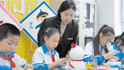 “全國大眾冰雪季給我們帶來了一個絕佳的主題切入點,讓傳統(tǒng)的羊毛氈工藝與冰雪運動相互交融碰撞,孩子們在戳刺羊毛的過程中,對冰雪文化有了更深層次的理解,也對非遺技藝充滿敬意?!苯】到中W(xué)美術(shù)教師山丹邊說邊悉心指導(dǎo)學(xué)生把握形狀、色彩與紋理,幫助他們將創(chuàng)意更好地在羊毛氈作品中呈現(xiàn)。“我在制作這個滑雪小人的時候,就一直在想自己滑雪時的快樂,每戳一針都很用心,希望能把這份快樂表現(xiàn)在作品里?!彼哪甓鄬W(xué)生宋子祺說。