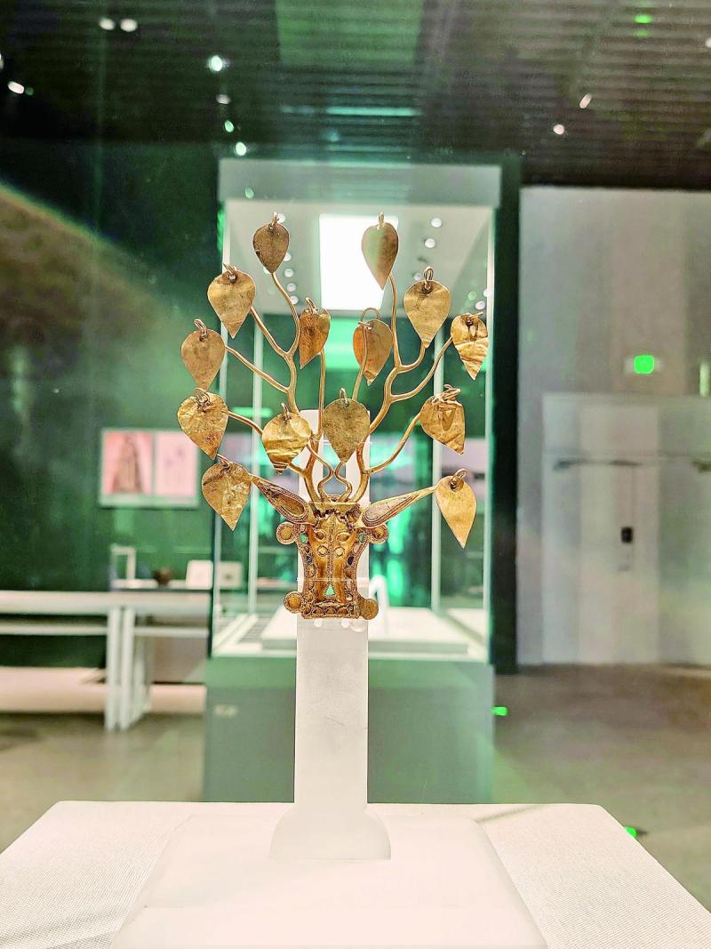 展覽中,呼倫貝爾的嘎仙洞遺址出土的石鏃、骨錐等,見(jiàn)證了拓跋鮮卑早期的生活遺跡;內(nèi)蒙古博物院藏的鹿角金步搖冠精美華麗,鹿頭面部鑲嵌有珠飾,鹿角支叉上所掛的桃形金葉均可搖動(dòng),象征著草原民族對(duì)于鹿的崇拜;釉陶馬、青釉武士俑,展示了拓跋鮮卑強(qiáng)大的騎兵力量;從大同出土的彩繪陶女舞俑到洛陽(yáng)出土的彩繪陶伎樂(lè)俑,體現(xiàn)了北魏在漢化改革前后的服飾變化、音樂(lè)舞蹈和社會(huì)生活。
