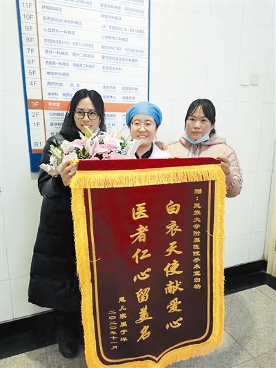 11月27日,當孩子已經(jīng)好轉出院,王欣影沒有忘記那一夜遇到的好心人,她再一次撥通白楊的電話,此時,她才得知白楊就是附屬醫(yī)院手術室的一名護士。她將一面寫有“白衣天使獻愛心醫(yī)者仁心留美名”的錦旗送到了白楊的手中,她說:女兒又多了一位媽媽。白楊也向記者講起了那晚的經(jīng)歷,她說:“其實,那晚我是去接我丈夫的,由于暴雪,丈夫被困在了米家科技園附近,我開車去接他,在回來的路上,看到有車輛遇險,心想,這樣惡劣的天氣,遇到誰有困難就應該幫一把,當時,我們也沒有多想,我也是做母親的,看到夫妻倆那么焦急,我只想把孩子快點送到醫(yī)院,好在有驚無險,孩子平安無事?!焙髞恚浾哌€了解到,當把孩子送到醫(yī)院后,白楊已渾身濕透,待孩子已經(jīng)搶救上,安頓好王欣影后,已經(jīng)是凌晨5點,天也蒙蒙亮了,白楊沒有回家,一夜未眠的她,留在了工作崗位上。