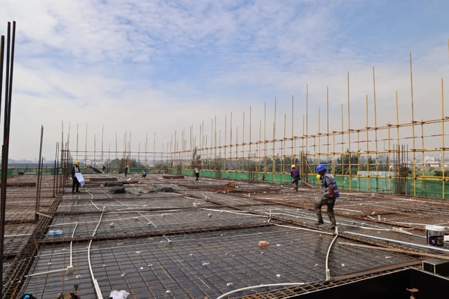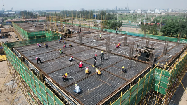 “目前,項目正在進行基礎(chǔ)設(shè)施施工,辦公樓已完成1層封頂,1號車間正在進行主體結(jié)構(gòu)的鋼管架的搭設(shè)和模板制作,外網(wǎng)工程和2號、3號車間基礎(chǔ)施工也在順利推進?!表椖渴┕挝回?fù)責(zé)人王秀山告訴記者,該項目計劃今年8月底完成辦公樓、綜合服務(wù)樓主體施工,9月中旬完成3個車間主體施工。