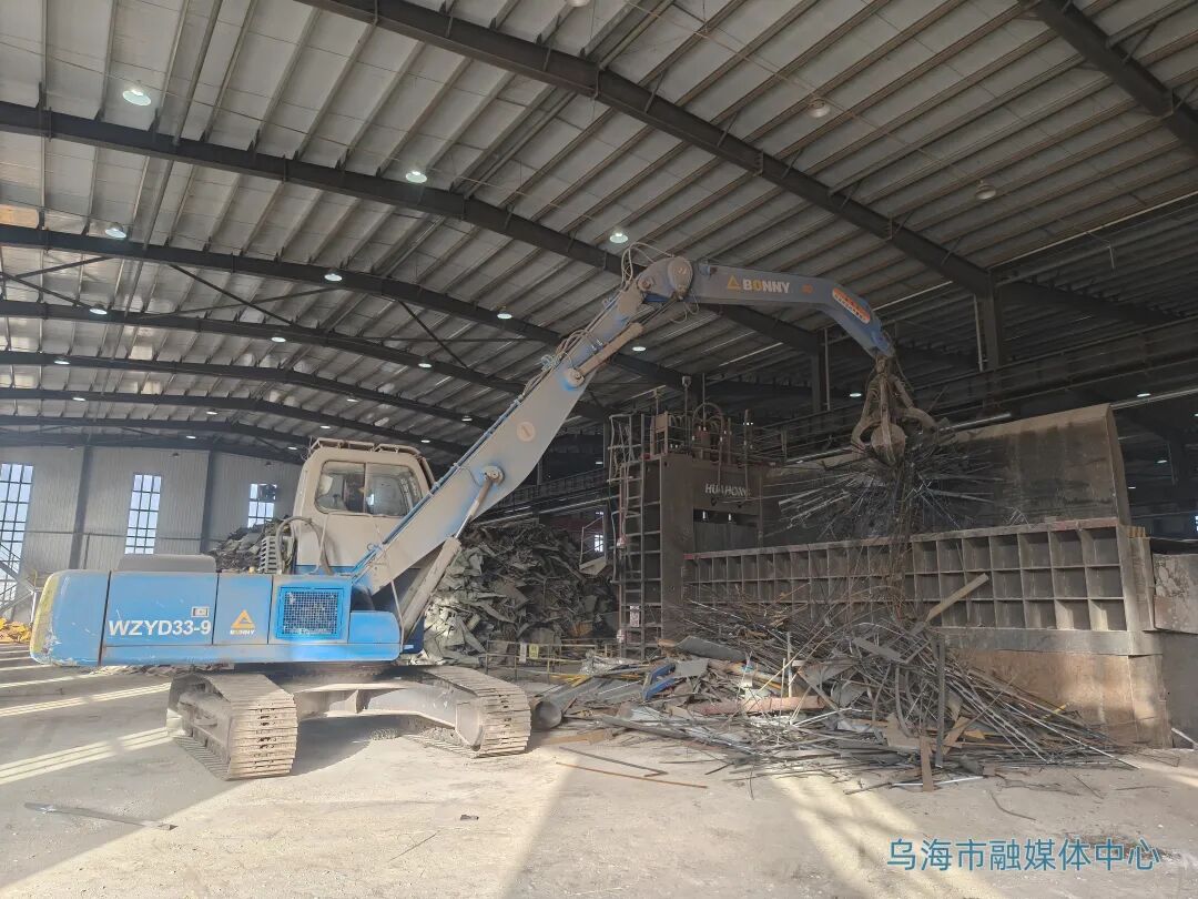 近日,記者來(lái)到位于烏海海勃灣高新技術(shù)產(chǎn)業(yè)開發(fā)區(qū)的內(nèi)蒙古萬(wàn)斯通環(huán)保再生資源回收有限公司,走進(jìn)廢鋼車間,龍門剪、抓鋼機(jī)、電磁起重機(jī)等交叉作業(yè),機(jī)械轟鳴聲與金屬撞擊聲、破碎聲不絕于耳。
