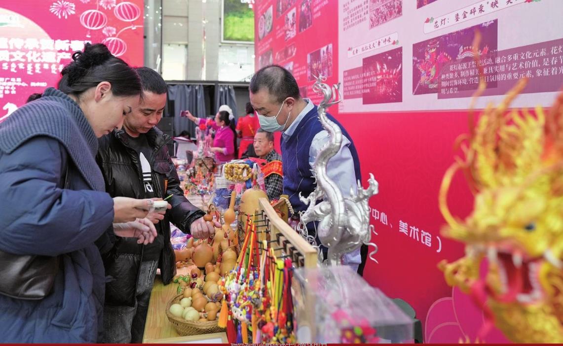 活動現(xiàn)場年味濃郁,非遺藝術(shù)品琳瑯滿目。從精雕細(xì)琢的鐵編擺件到栩栩如生的“福祿”烙畫,每一件都凝聚著匠人的匠心巧思與傳統(tǒng)文化的深厚底蘊。人們穿梭其間挑選心儀年貨,贊嘆聲、詢價聲、歡笑聲交織,濃濃的年味與文化氣息在市集里肆意流淌。