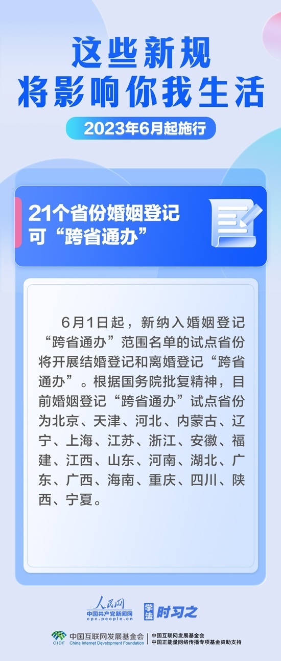 依法從嚴(yán)懲處性侵害未成年人犯罪,21個(gè)省份婚姻登記可“跨省通辦”,規(guī)范個(gè)人信息出境活動(dòng)……6月,這些新規(guī)施行,將影響你我生活。