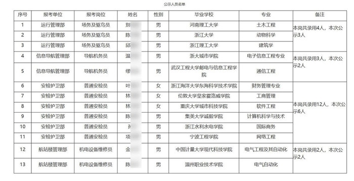 ·溫州機(jī)場(chǎng)集團(tuán)回應(yīng)浙大畢業(yè)生應(yīng)聘驅(qū)鳥(niǎo)員:社會(huì)招聘,擇優(yōu)錄取。