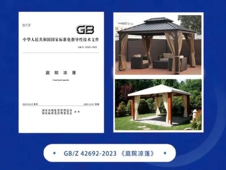 《庭院涼篷》國家標(biāo)準(zhǔn)化指導(dǎo)性技術(shù)文件自2023年12月1日起實施,該文件的制定和出臺將填補該類產(chǎn)品缺乏標(biāo)準(zhǔn)規(guī)范的空白,有利于庭院涼篷產(chǎn)品質(zhì)量的提升以及行業(yè)的發(fā)展,為企業(yè)出口提供保障。文件首次對庭院涼篷從產(chǎn)品分類、原材料、外觀、產(chǎn)品完整性、尺寸、性能要求和安全要求等方面進行詳細規(guī)范。