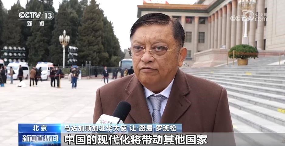 馬達加斯加駐華大使 讓·路易·羅班松:中國的現代化發(fā)展很好,中國的現代化將帶動其他國家,尤其是發(fā)展中國家的現代化。中國有關世界和平的立場主張也會更加受到全世界的關注。