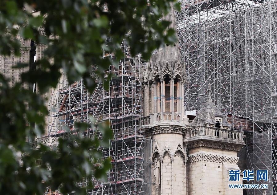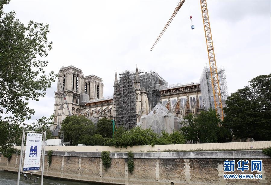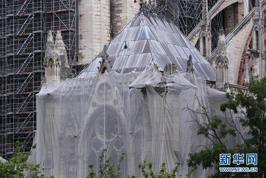 這是6月9日在法國巴黎拍攝的正在進行腳手架拆除工作的巴黎圣母院。法國巴黎圣母院于8日開始拆除去年大火中被焚的腳手架。作為巴黎圣母院修復(fù)工作的重要組成部分,這項工程預(yù)計將持續(xù)至少3個月。2019年4月15日,巴黎圣母院遭遇大火,當(dāng)時圣母院正在進行維修,搭建的腳手架在火災(zāi)中損毀、變形。新華社記者高靜攝