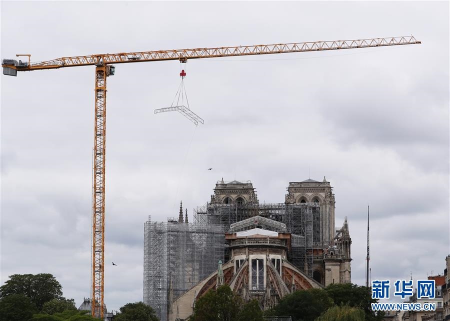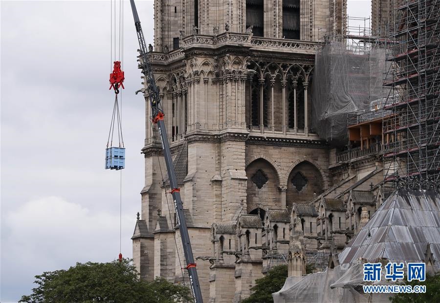 這是6月9日在法國巴黎圣母院維修工程現(xiàn)場工地拍攝的工作人員。法國巴黎圣母院于8日開始拆除去年大火中被焚的腳手架。作為巴黎圣母院修復(fù)工作的重要組成部分,這項工程預(yù)計將持續(xù)至少3個月。2019年4月15日,巴黎圣母院遭遇大火,當(dāng)時圣母院正在進行維修,搭建的腳手架在火災(zāi)中損毀、變形。新華社記者高靜攝