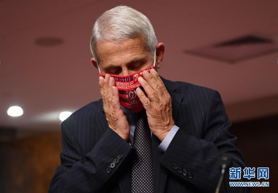 這是6月30日,在美國華盛頓,美國白宮冠狀病毒應對工作組重要成員、國家過敏癥和傳染病研究所所長安東尼·福奇出席參議院衛(wèi)生、教育、勞工與養(yǎng)老金委員會聽證會。安東尼·福奇于當日表示,如果美國目前的新冠疫情形勢得不到扭轉,全美將有可能每天增加10萬病例。新華社發(fā)(凱文·迪奇攝)