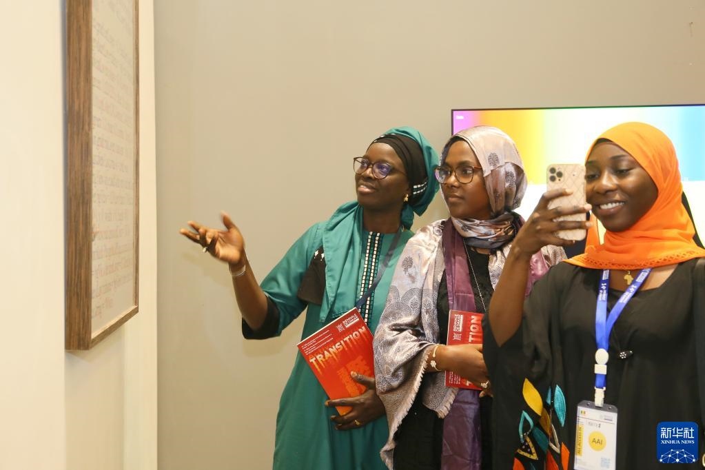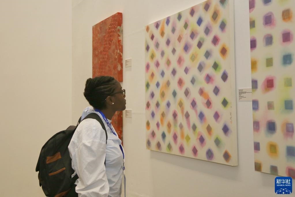 5月19日,觀眾在塞內加爾達喀爾非洲當代藝術雙年展的中國館參觀。新華社記者王子正攝