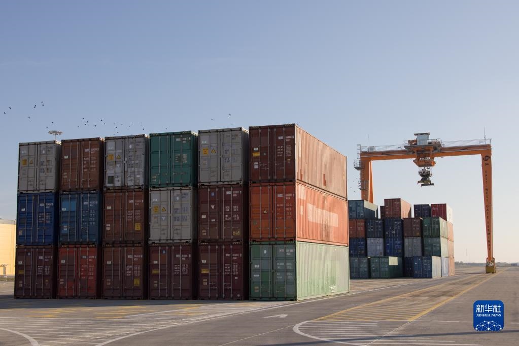 這是10月18日在匈牙利費(fèi)涅什利特凱的東西門(mén)場(chǎng)站拍攝的集裝箱和由5G技術(shù)遠(yuǎn)程控制的龍門(mén)起重機(jī)。新華社發(fā)(弗爾季·奧蒂洛攝)
