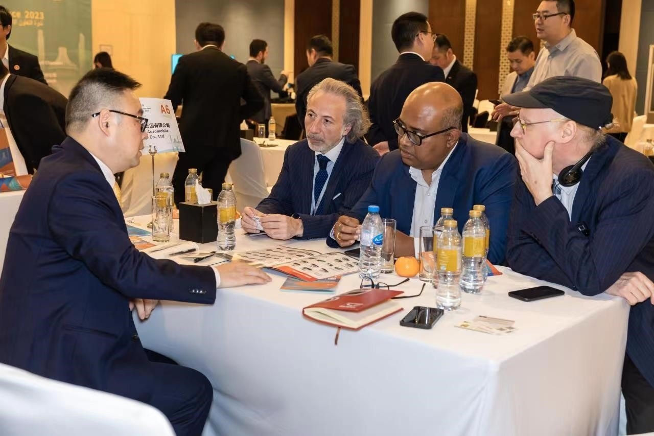 在企業(yè)自由對接環(huán)節(jié),參會的廣西企業(yè)高管與阿聯酋當地企業(yè)代表,在會場設立的物流、農產品及食品、裝備制造、通關服務、影視動漫、清真產品等領域企業(yè)洽談區(qū),進行了面對面洽談,現場交流氣氛熱烈。