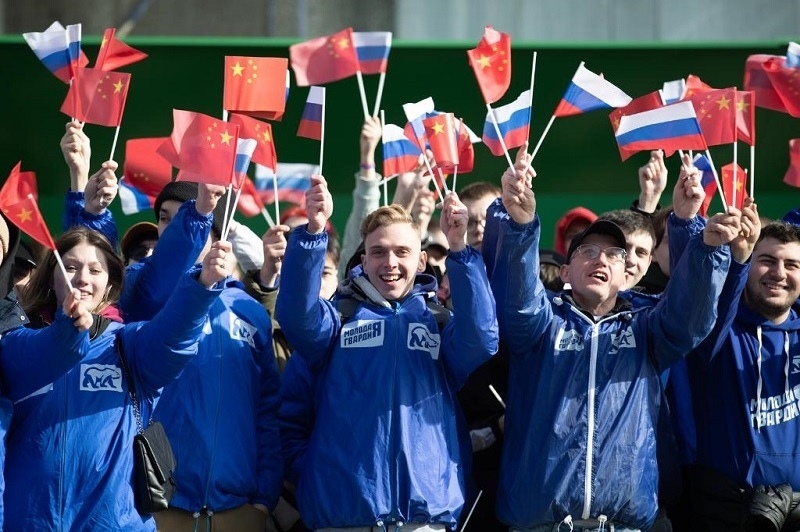 在中國領(lǐng)導人下榻酒店附近,眾多俄羅斯青年和中國留學生、中企員工、華僑華人熱情揮舞著兩國國旗?!盁崃覛g迎”的口號,同俄語的歡呼聲,交織在一起。