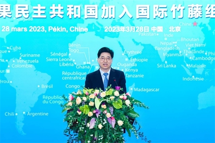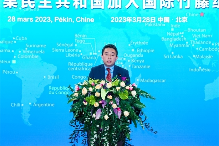 國際竹藤組織理事會主席、喀麥隆林業(yè)和野生動物部部長恩東戈·朱爾·多雷,國際竹藤組織董事會聯(lián)合主席江澤慧,中國外交部國際經濟司參贊張雷,中國國家林業(yè)和草原局副局長譚光明,乍得共和國駐華使館代辦馬魯米,剛果民主共和國農業(yè)部部長姆津加·比利漢澤·德西雷出席并致辭。