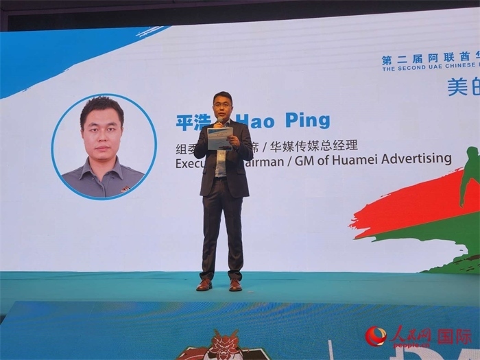 阿聯(lián)酋第二屆華人足球聯(lián)賽賽事組委會執(zhí)行主席平浩在頒獎典禮暨答謝晚宴上致辭。人民網記者 管克江攝
