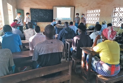 在幾內(nèi)亞比紹巴法塔,當(dāng)?shù)剞r(nóng)民接受中國農(nóng)技組專家的培訓(xùn)。中國援幾內(nèi)亞比紹農(nóng)技專家組供圖