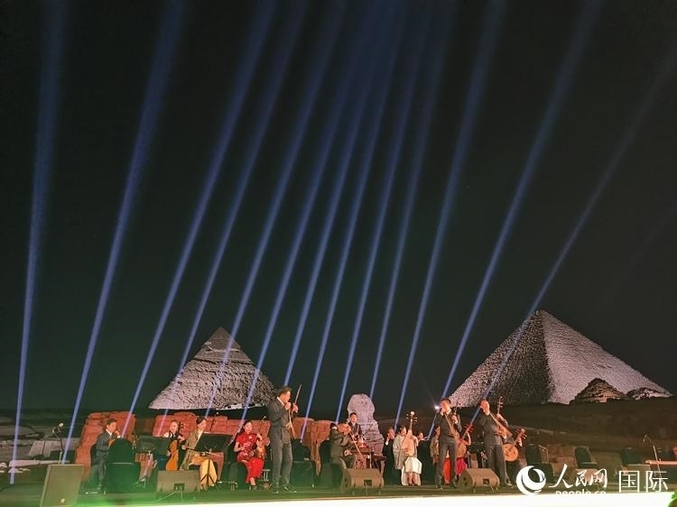 中埃兩國(guó)同為世界文明古國(guó),人文領(lǐng)域合作空間大、潛力足。夜幕下的吉薩三大金字塔在燈光映襯下巍峨聳立,現(xiàn)場(chǎng)橫幅展示出“讓中埃友誼如尼羅河水奔涌向前”字樣,兩大古老文明此刻在金字塔上空相遇。音樂(lè)會(huì)的成功舉辦將成為中埃兩國(guó)文化合作新起點(diǎn)。