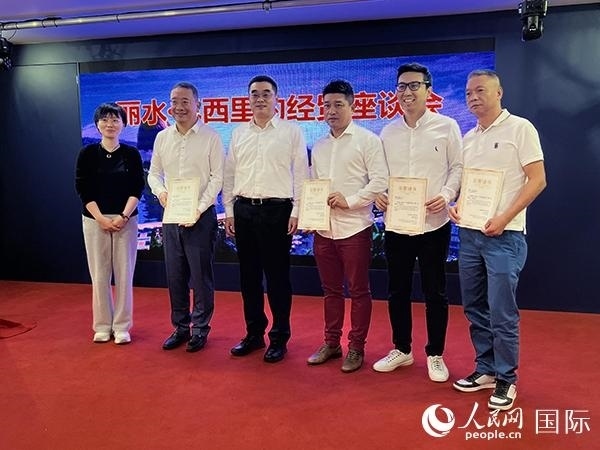 在麗水-里約經(jīng)貿(mào)座談會上,里約部分僑領(lǐng)被授予麗水市“全球商貿(mào)大使”榮譽稱號,巴西中國浙江商會負責人與麗水市有關(guān)部門代表簽署了經(jīng)貿(mào)合作備忘錄。里約多家僑團主要負責人出席座談會。