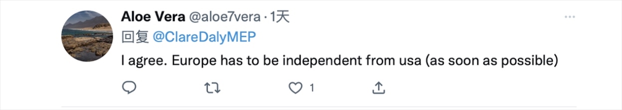 “我同意。歐洲必須從美國獨立出來(盡快)。”↓