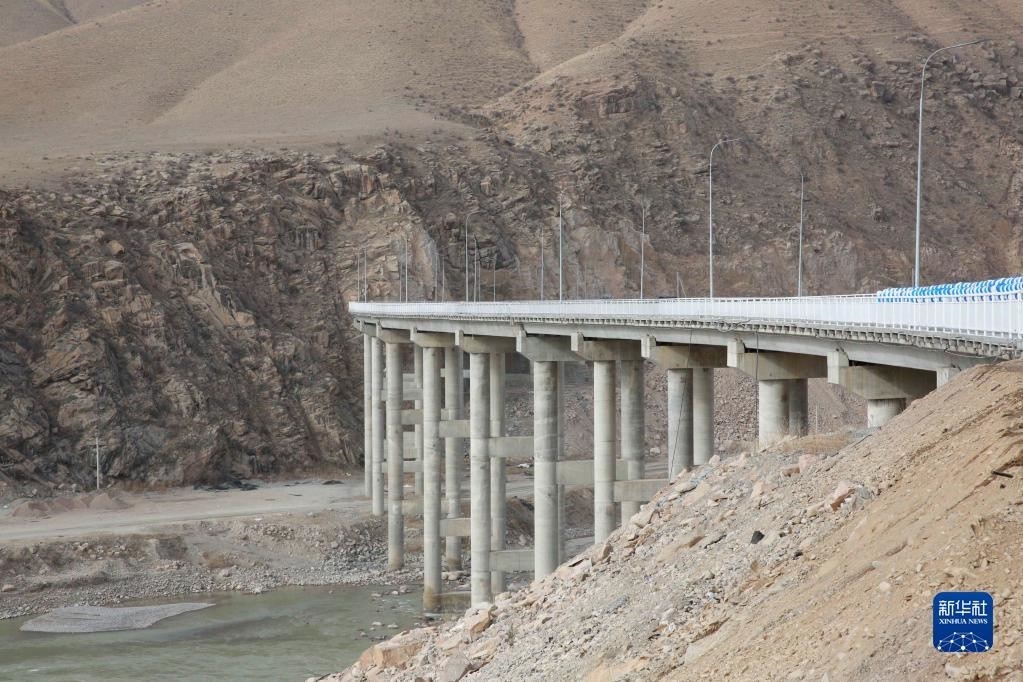 這是2021年11月10日拍攝的吉爾吉斯斯坦新北南公路二期工程的一座大橋。新華社發(fā)(羅曼 攝)