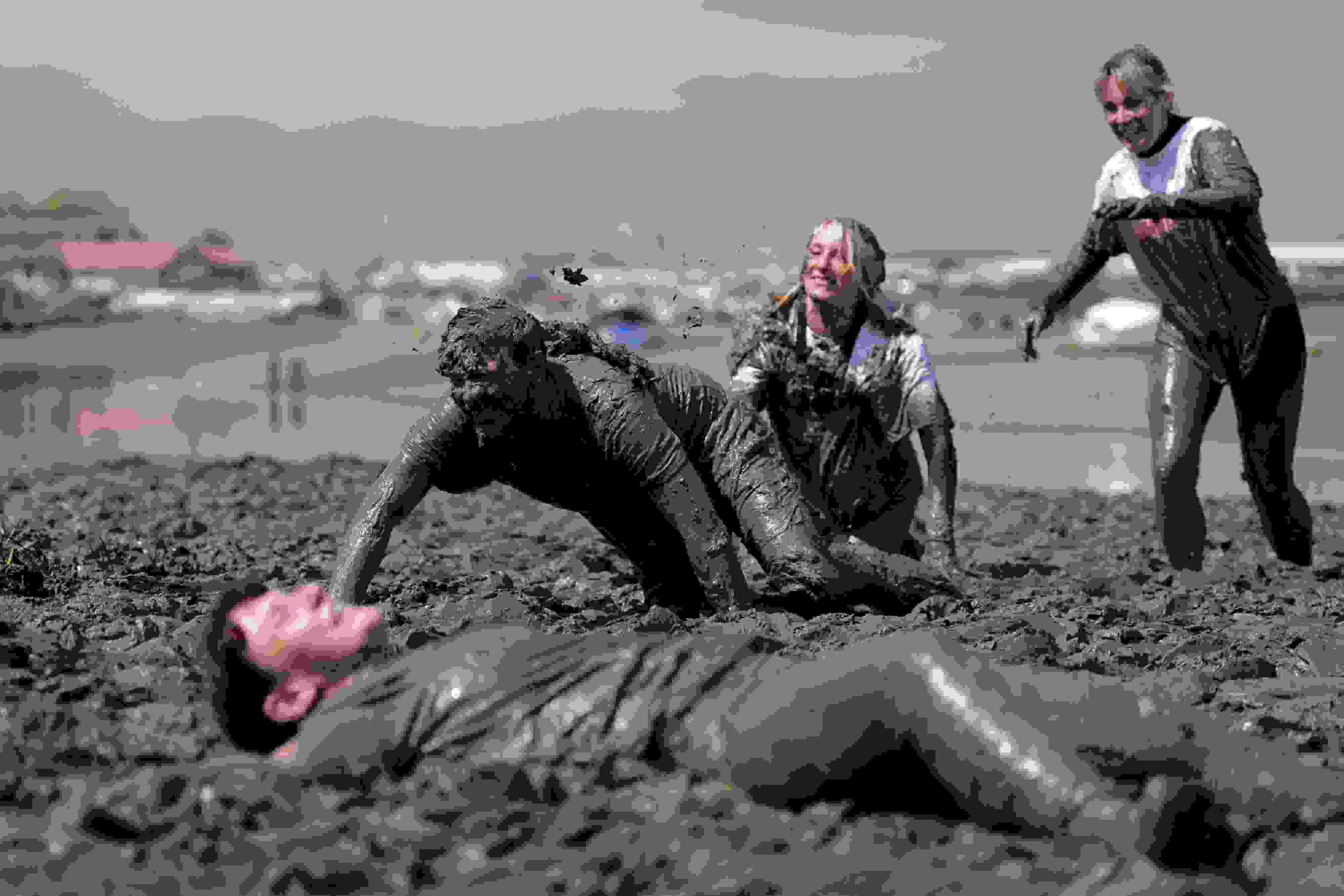 英國莫爾登上演年度“滾泥巴大賽”