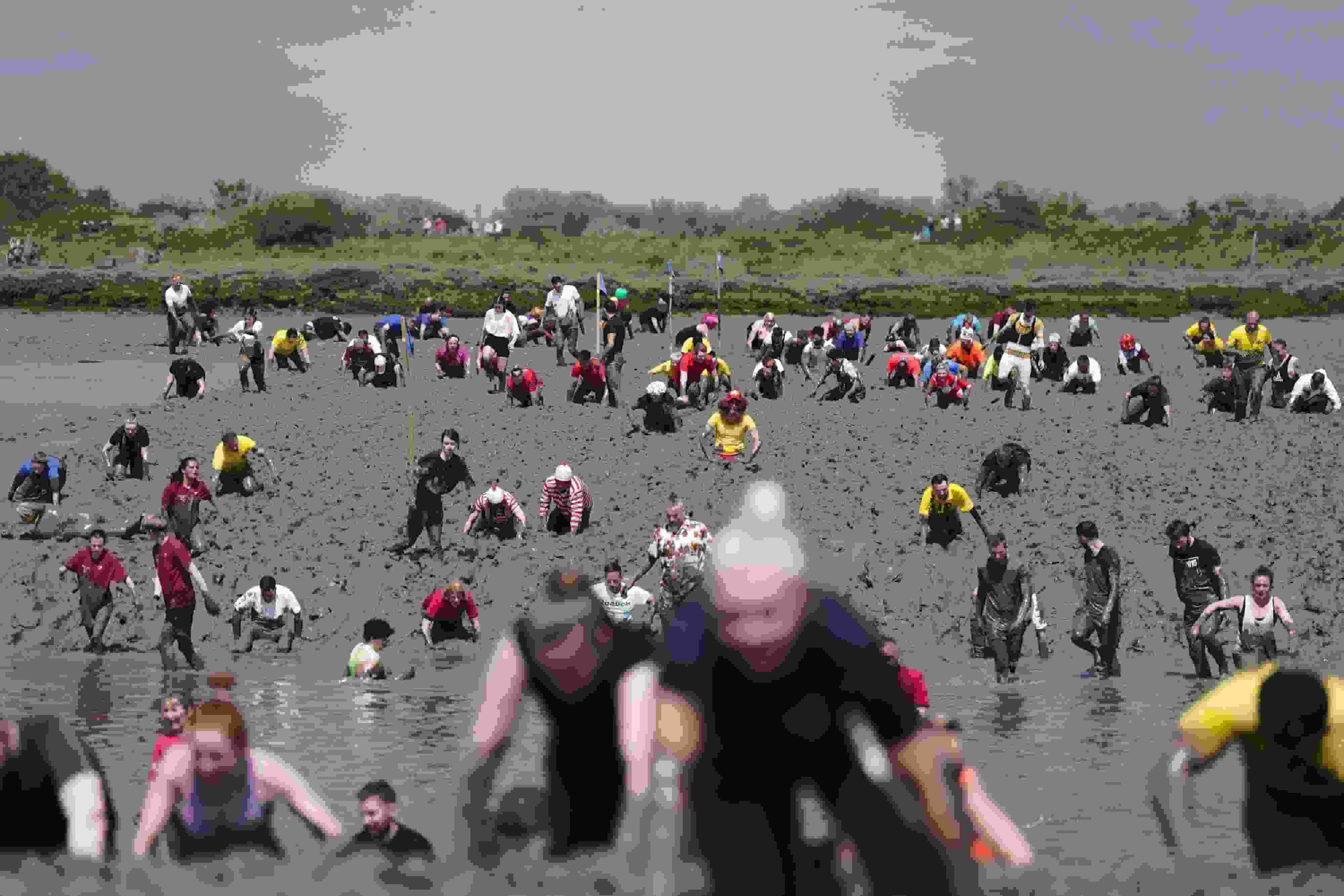 當?shù)貢r間2023年5月14日,英國莫爾登,參賽者參加一年一度的滾泥巴大賽。該大賽是一項慈善活動,參賽者要在埃塞克斯郡的黑水河河床上賽跑。 視覺中國