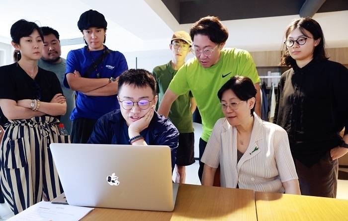 這張照片美好動人,充滿著彼此尊重、珍愛的師生情誼。能夠精準地捕捉到這樣稍縱即逝的人物情感交流,一方面離不開老師的扮演者,中國白蘭地首席大師張葆春在劇中的本色出演,另一方面也顯然得益于拍攝之前田雨峰進行的背景調(diào)查和資料準備工作。向張葆春老師請教釀酒知識,了解“學生”文文(錢冬旎飾)對角色和人物關系的理解,這些細致、瑣碎甚至看起來不甚必要的準備過程,是最終劇照能在觀眾面前精準呈現(xiàn)、動人表達的必要條件。
