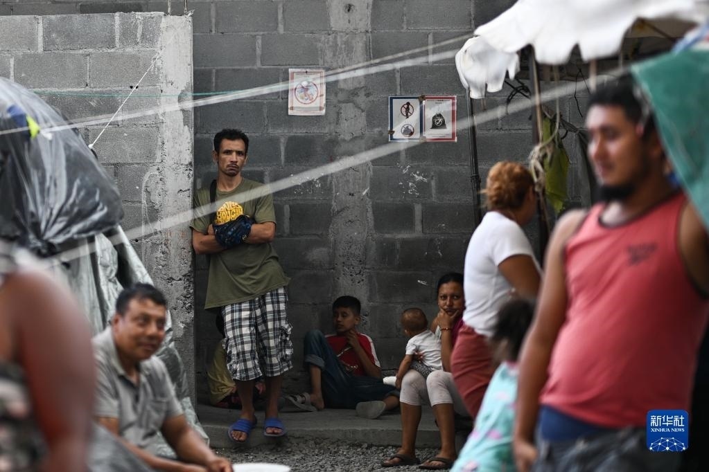 這是5月16日在美墨邊境城市墨西哥雷諾薩的一處收容所外拍攝的移民。