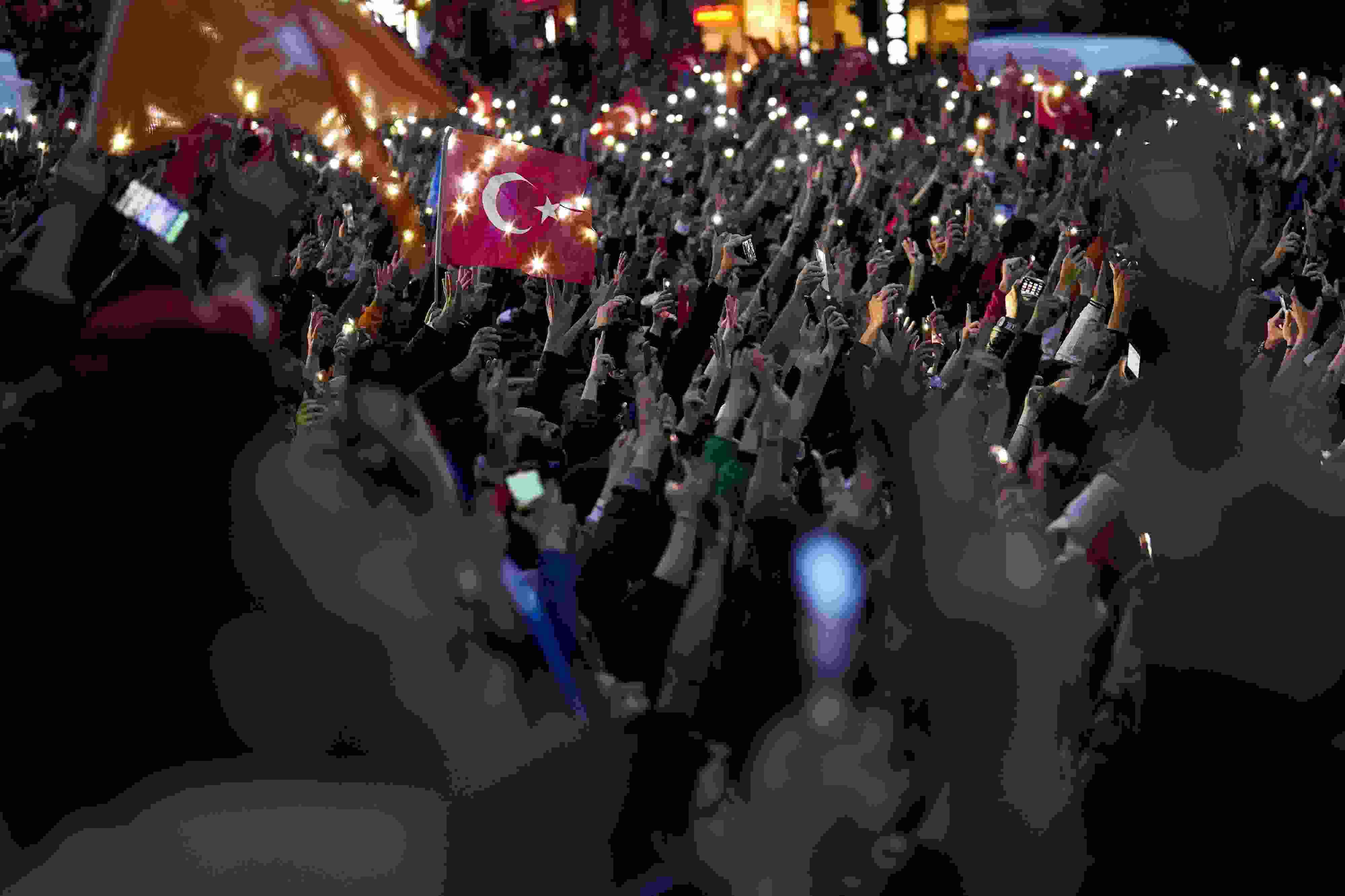 當?shù)貢r間2023年5月28日,土耳其伊斯坦布爾,埃爾多安的支持者慶祝其再次當選土耳其總統(tǒng)。土耳其最高選舉委員會主席艾哈邁德·耶內(nèi)爾28日深夜在首都安卡拉宣布,根據(jù)初步計票結果,現(xiàn)任總統(tǒng)埃爾多安在28日舉行的總統(tǒng)選舉第二輪投票中戰(zhàn)勝對手,再次當選總統(tǒng)。 視覺中國