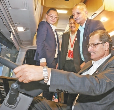 尼泊爾代表在十堰市東風(fēng)商用車(chē)品牌體驗(yàn)中心了解產(chǎn)品信息。劉 旻攝