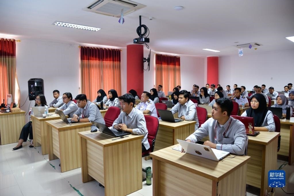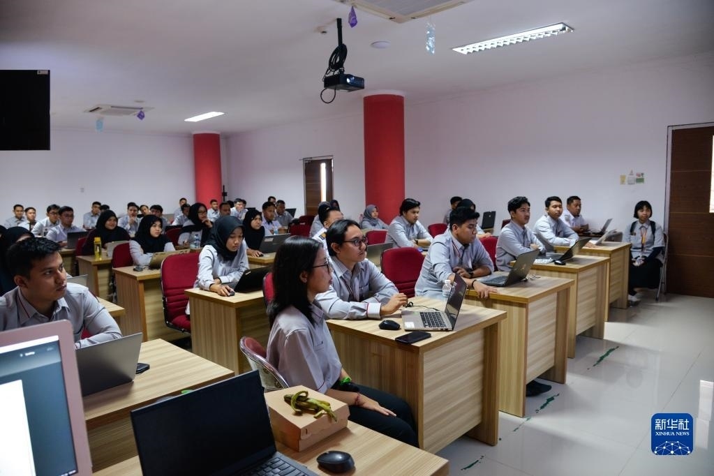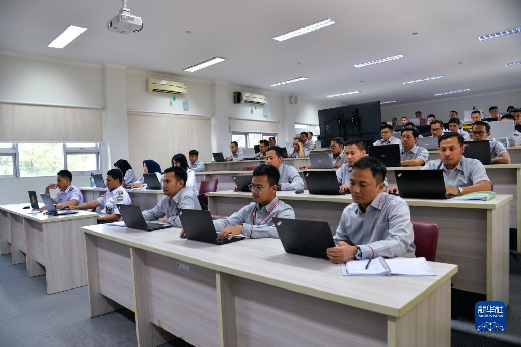 6月7日,在位于印度尼西亞茉莉芬市的印尼鐵路理工學院,學員們參加雅萬高鐵應急值守人員培訓。