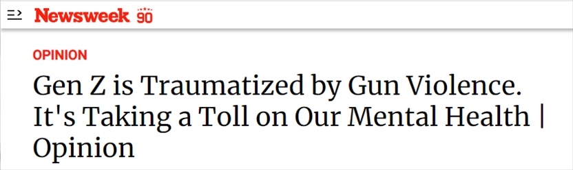 文章作者亞莉克莎·布朗寧(Alexa Browning)寫到,作為年輕人,她對槍支暴力造成的創(chuàng)傷有切身體會,其帶來的恐懼已滲透到她日常生活的每個角落,讓她精疲力盡。她無法和家人一起去看電影,因為她非常擔心自己分辨不了煙花的響聲和槍聲。