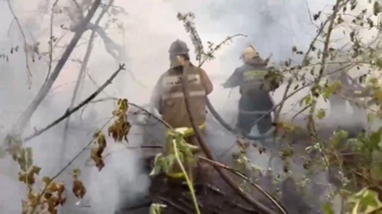 視頻截圖:火災救援畫面(哈薩克斯坦緊急情況部提供)