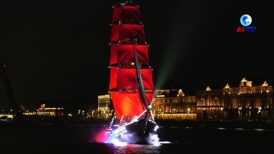 24日深夜,圣彼得堡為慶祝中學(xué)生畢業(yè)準備的年度大型活動“紅帆節(jié)”如期舉行。