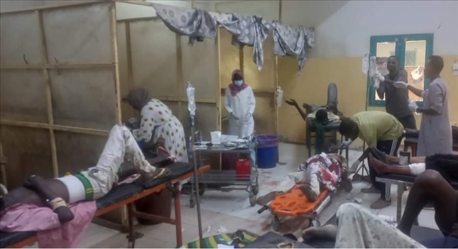 △喀土穆一市場遭空襲之后,在附近醫(yī)院救治的傷員